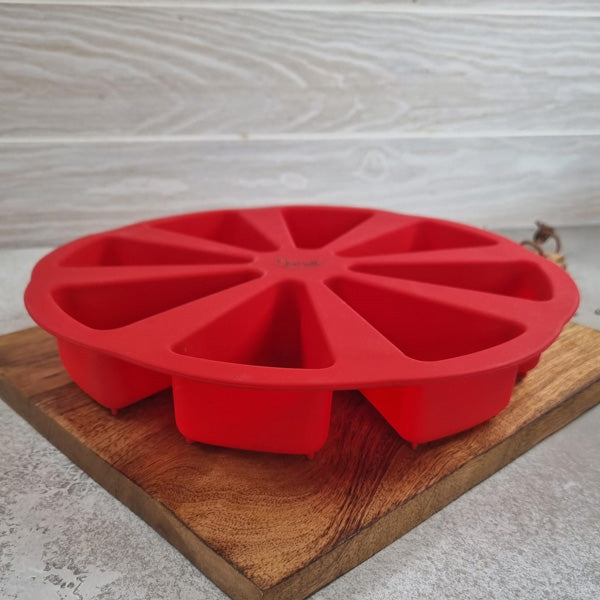 Wil je kleine broodjes, cakejes, brownies of pizzabroodjes maken? Dan is deze vorm wat voor jou! Je kunt direct handige porties maken met deze 8 puntige triangel vorm. Met deze vorm kun je in één keer 8 heerlijke stukjes bakken!